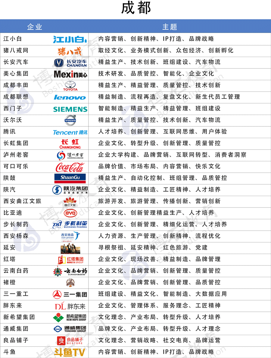 成都标杆企业参访名录