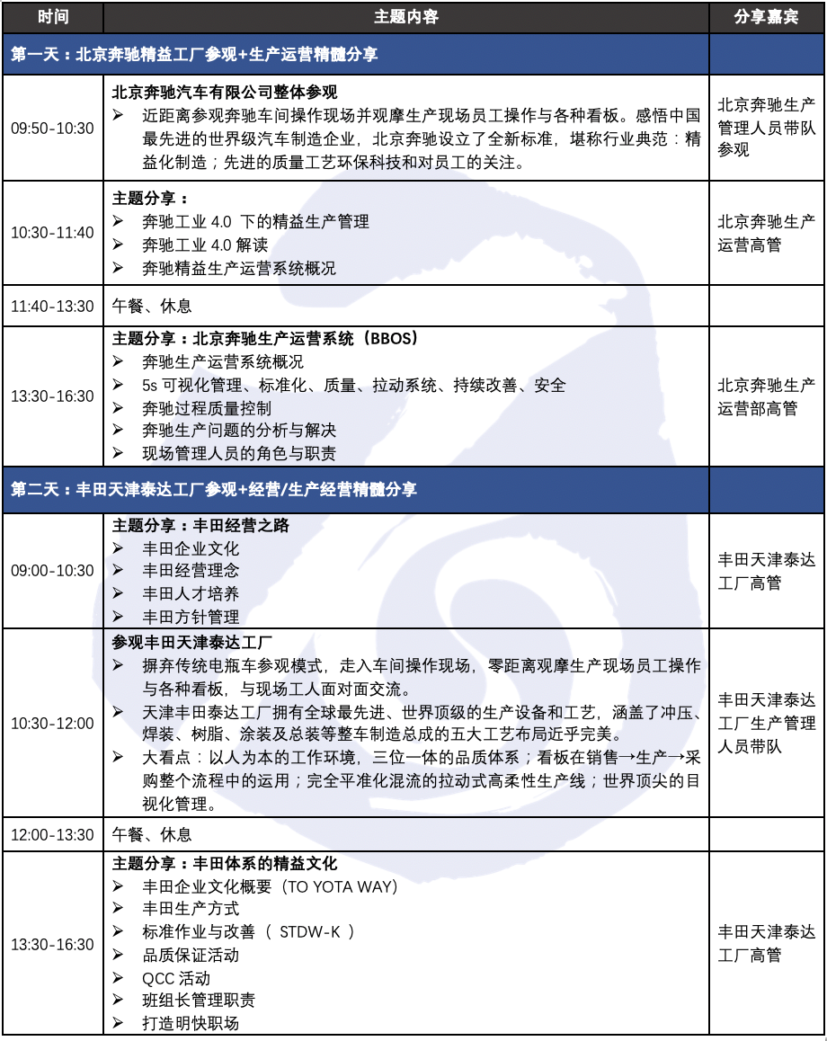 学习对象:董事长、总经理等高管及生产管理负责人,强烈建议企业老总带领生产管理人员共同参加。