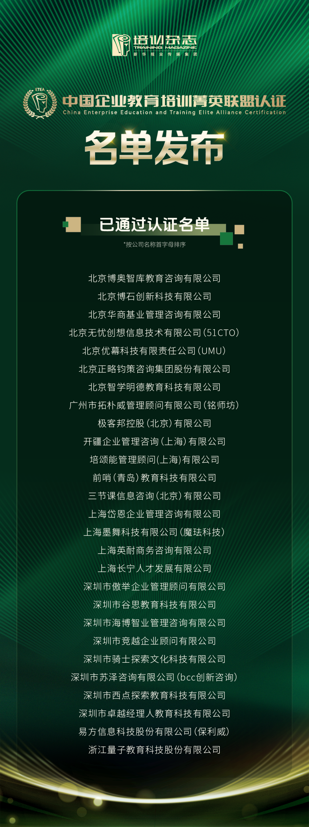 博石教育荣获中国企业教育培训菁英联盟认证, 标杆学习行业首家
